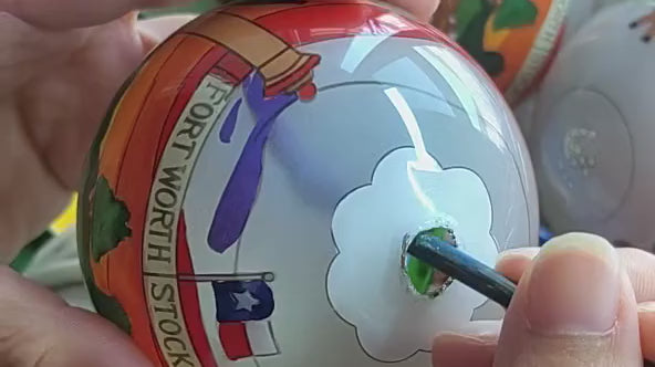 One-of-a-kind, hand-painted glass Christmas ornaments designed in Texas!
